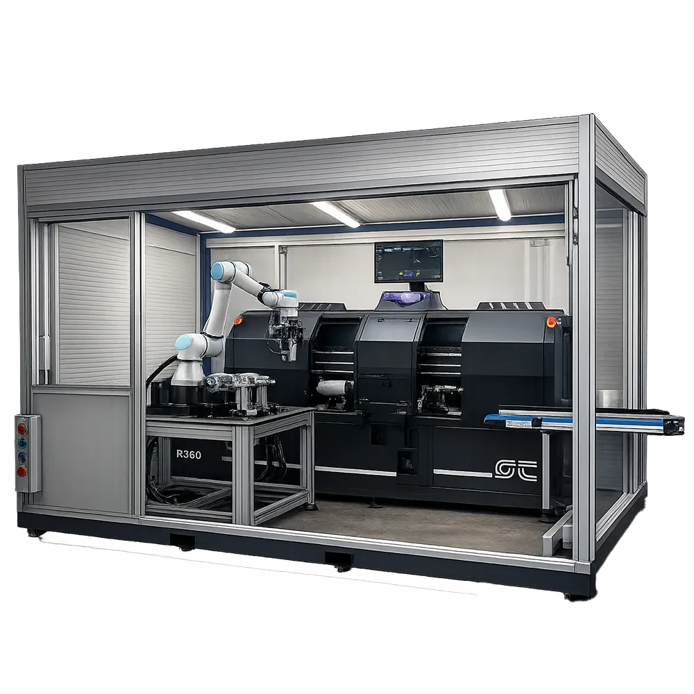 Eagle R360 2P si trasformarsi in una isola robotica automatizzata, grazie all’integrazione di un robot che automatizza la fase di carico e scarico. permette di:
